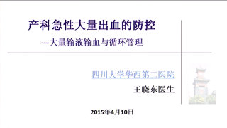 产科急性大量出血的防控--大量输液输血与循环管理