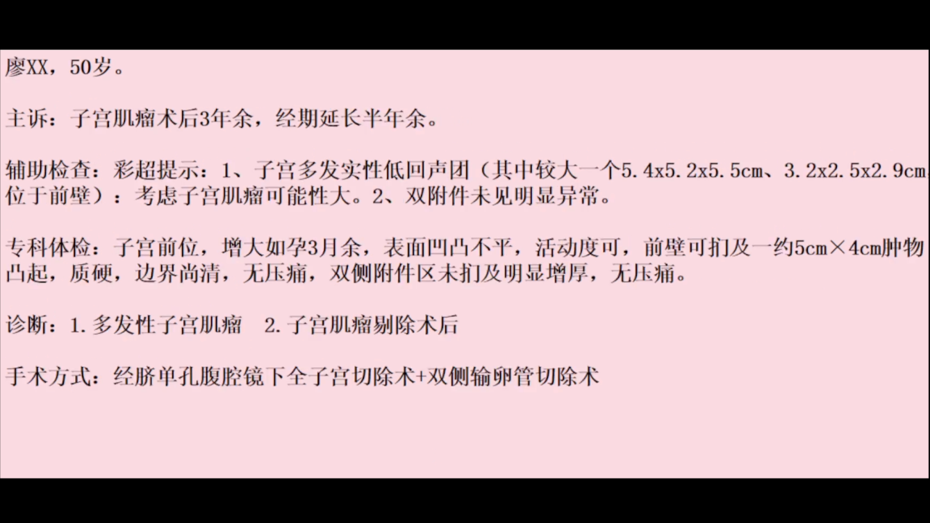 经脐单孔腹腔镜全子宫切除+双侧输卵管切除