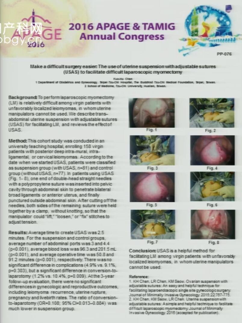 Make a difficult surgery easier:The use of uterine suspension with adjustable sutures(USAS) to facilitate difficult laparoscopic myomectomy