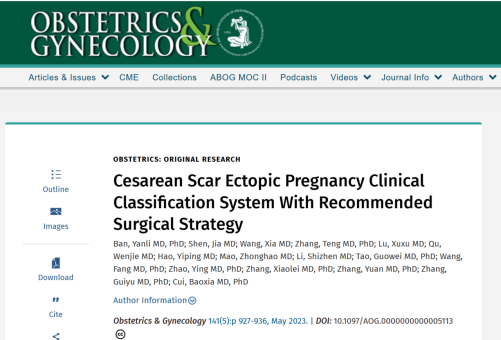 近日,山东大学齐鲁医院妇产科节育妇科团队在国际妇产科权威期刊 Obstetrics & Gynecology(JCR Q1,IF=7.623)在线发表题为“Cesarean Scar Ectopic Pregnancy Clinical Classification System With Recommended Surgical Strategy”的论文。