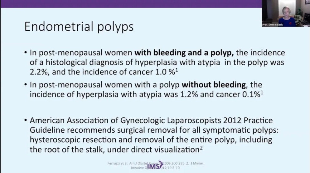 对于非预期绝经相关子宫出血的管理比较复杂,将按照以下三个议题为大家介绍,相信对临床问题的解决更有帮助。首先,怎样管理已经确定病理组织学类型的绝经后出血,不同的诊断可能需要不同的管理,所以需要理解不同病理组织学类型的术语及其意义,这将帮助临床医生做出更好的决策。然后,强调绝经后出血子宫内膜息肉的管理,目前子宫内膜息肉没有一个完整清晰的治疗方向,希望通过讲述至少在从哪里入手上有一个更好的思路。最后,绝经激素治疗中非预期出血的管理。
