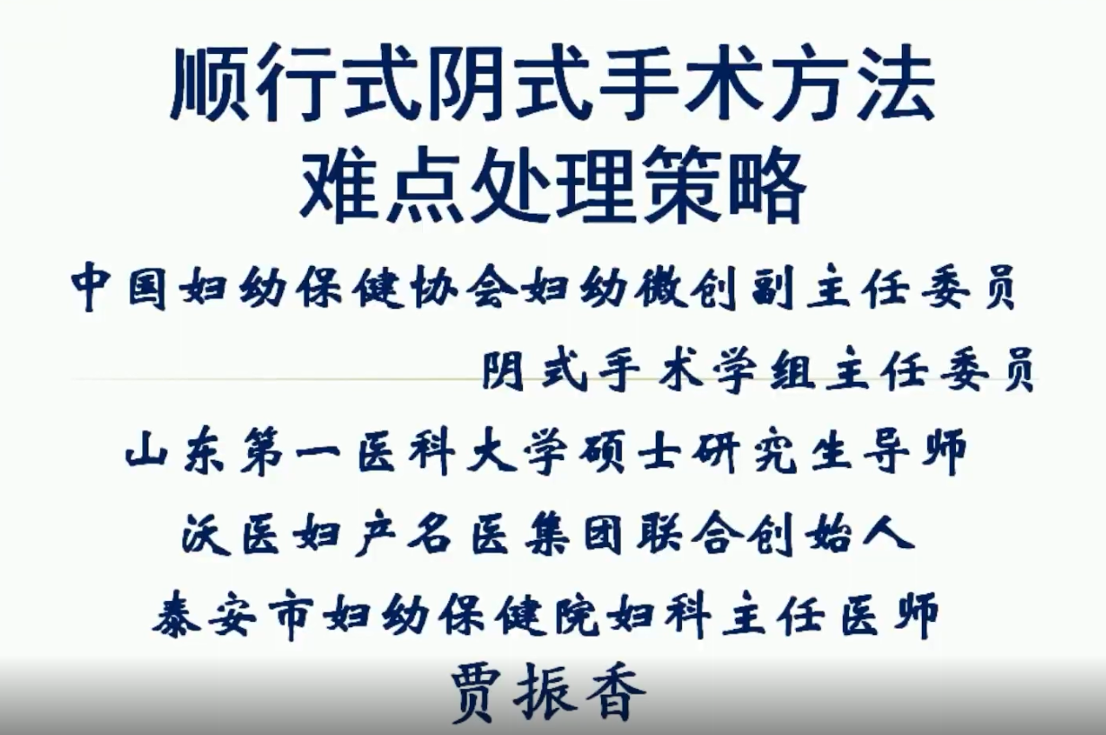 专家介绍 贾振香 教授 泰安市妇幼保健院 全国著名微创手术专家,中国妇幼保健学会妇幼微创专业委员会副主任委员,沃医妇产名医集团联合创始人,顺行式阴式手术发明人,市突出贡献的中青年专家,市十大名医,泰安市妇幼保健院妇科主任,主任医师,泰安市妇幼保健学会妇女保健暨妇科微创专业委员会主任委员,山东医师协会妇科微创委员会常务委员,山东妇幼保健协会妇科微创委员会常务委员,中国整形美容协会委员,中国名医名院发展促进委员会常务委员,山东省疼痛研究会妇产科专业委员会常务委员,山东医学会妇产科学会委员,山东医师学会妇产科学会委员等社会兼职。 擅长妇产科疑难危重病人的诊治,在国家专业杂志上发表学术论文30余篇,精通妇科与产科的手术治疗,对妇科微创手术及治疗深入研究,如宫、腹腔镜手术,阴式手术等,特别对疑难的阴式微创子宫系列手术有自己的独到之处,对传统的阴式子宫手术加以系统改良,提出了“顺行式阴式系列手术”的新概念,发明了顺行式阴式子宫系列手术的四项国家专利器械,创新性的开展了顺行式阴式子宫系列手术10000余例。多次在全国学术会及国际学术会议上讲授“阴式子宫手术方法及难点处理策略、顺行式阴式子宫切除术、阴式子宫肌瘤剔除术、腹腔镜辅助阴式子宫肌瘤剔除、备孕女性子宫肌瘤的微创化治疗策略、瘢痕妊娠的防治策略”等课题及手术演示,于2014年、2016年主办了二届“中国·泰山·国际妇科微创及全国阴式手术及盆底重建学术研讨会”,创新性开展了多种阴式系列手术,推动了全国阴式微创系列手术的发展与提高。
